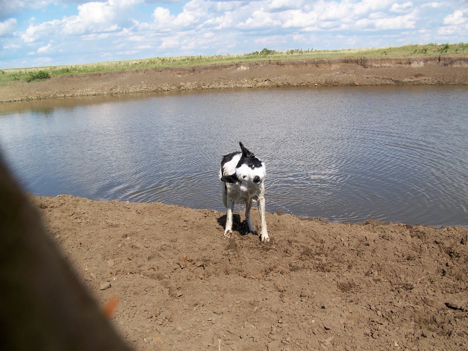 When he shakes the water off after it reminds me of that song: "Shake your booty, shake, shake because he starts with his ears, then shoulders, then shakes his butt, and finally his tail.